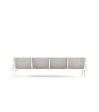 Stolik RTV 195 4D z serii MUTI w kolorze kaszmir to stylowy i praktyczny mebel do strefy dziennej. Dzięki czterem drzwiczkom oferuje sporo miejsca na sprzęt i akcesoria. Jego nowoczesny design i ciepły odcień kaszmir pięknie dopełnią każde wnętrze.