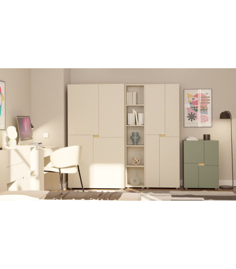Szafka LENS 4D w kolorze aloes to świeży akcent, który doda wnętrzu energii i nowoczesnego charakteru. Naturalny odcień zieleni pięknie współgra z listwą w dekorze Dąb Cremona. Idealna dla tych, którzy lubią subtelne, ale odważne rozwiązania.