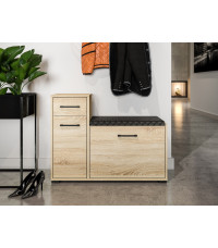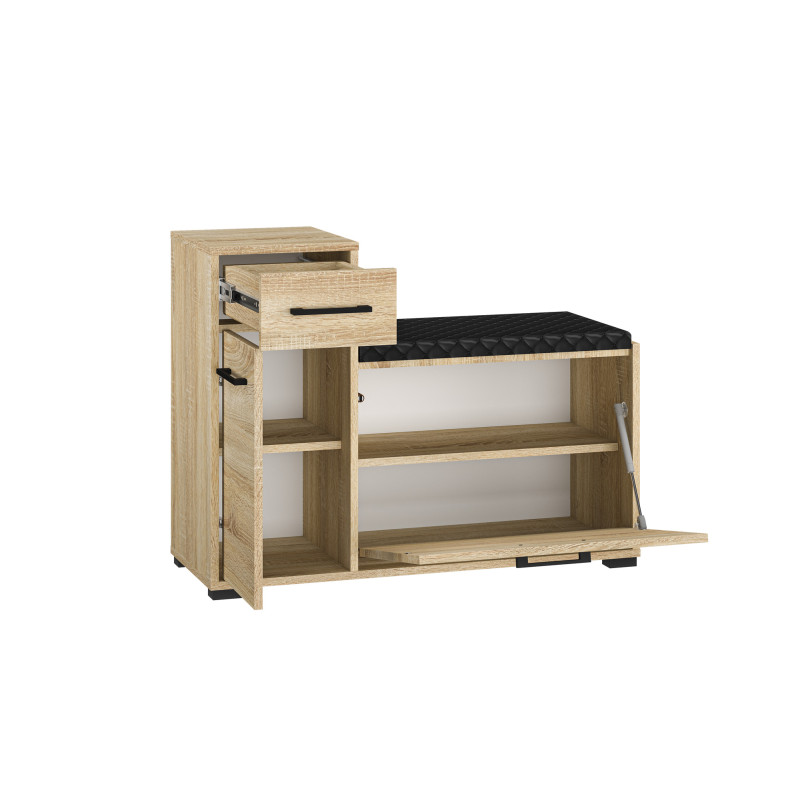 Meble z kolekcji Caro to połączenie klasycznego designu i funkcjonalności. Bogata oferta mebli Caro to świetna propozycja do przedpokoju, holu czy pokoju dziennego. Do stworzenia brył wykorzystaliśmy jeden z najpopularniejszych i bardziej uznanych dekorów – dąb Sonoma jasna. Uniwersalna kolorystyka sprawdzi się w każdym wnętrzu. Meble wykończone są minimalistycznymi, czarnymi uchwytami oraz pasującymi do nich stopkami. Proste i praktyczne meble Caro stworzą ciepłe i uporządkowane wnętrze już od samego wejścia do Twojego domu. Duży wybór poszczególnych elementów kolekcji daje swobodę aranżacji oraz maksymalne wykorzystanie przestrzeni, którą dysponujemy.