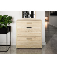 Meble z kolekcji Caro to połączenie klasycznego designu i funkcjonalności. Bogata oferta mebli Caro to świetna propozycja do przedpokoju, holu czy pokoju dziennego. Do stworzenia brył wykorzystaliśmy jeden z najpopularniejszych i bardziej uznanych dekorów – dąb Sonoma jasna. Uniwersalna kolorystyka sprawdzi się w każdym wnętrzu. Meble wykończone są minimalistycznymi, czarnymi uchwytami oraz pasującymi do nich stopkami. Proste i praktyczne meble Caro stworzą ciepłe i uporządkowane wnętrze już od samego wejścia do Twojego domu. Duży wybór poszczególnych elementów kolekcji daje swobodę aranżacji oraz maksymalne wykorzystanie przestrzeni, którą dysponujemy.