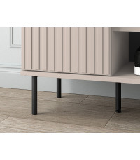 Meble z kolekcji Sophie to idealny wybór do współczesnego salonu, sypialni czy przedpokoju. Dzięki systemowi złożonemu z wielu brył urządzisz swoje wymarzone wnętrze. Kaszmirowy dekor to niebanalny i ponadczasowy kolor, nazywany nowym białym. Frezowane fronty MDF podkreślają wyrafinowanie i elegancję całej kolekcji. Dyskretne czarne nóżki dodają bryłom efektownej lekkości. Kropką nad i, dodatkowo budującą estetykę wszystkich mebli Sophie są uchwyty ze szczotkowanego metalu, w złotym wybarwieniu.