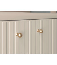 Meble z kolekcji Sophie to idealny wybór do współczesnego salonu, sypialni czy przedpokoju. Dzięki systemowi złożonemu z wielu brył urządzisz swoje wymarzone wnętrze. Kaszmirowy dekor to niebanalny i ponadczasowy kolor, nazywany nowym białym. Frezowane fronty MDF podkreślają wyrafinowanie i elegancję całej kolekcji. Dyskretne czarne nóżki dodają bryłom efektownej lekkości. Kropką nad i, dodatkowo budującą estetykę wszystkich mebli Sophie są uchwyty ze szczotkowanego metalu, w złotym wybarwieniu.