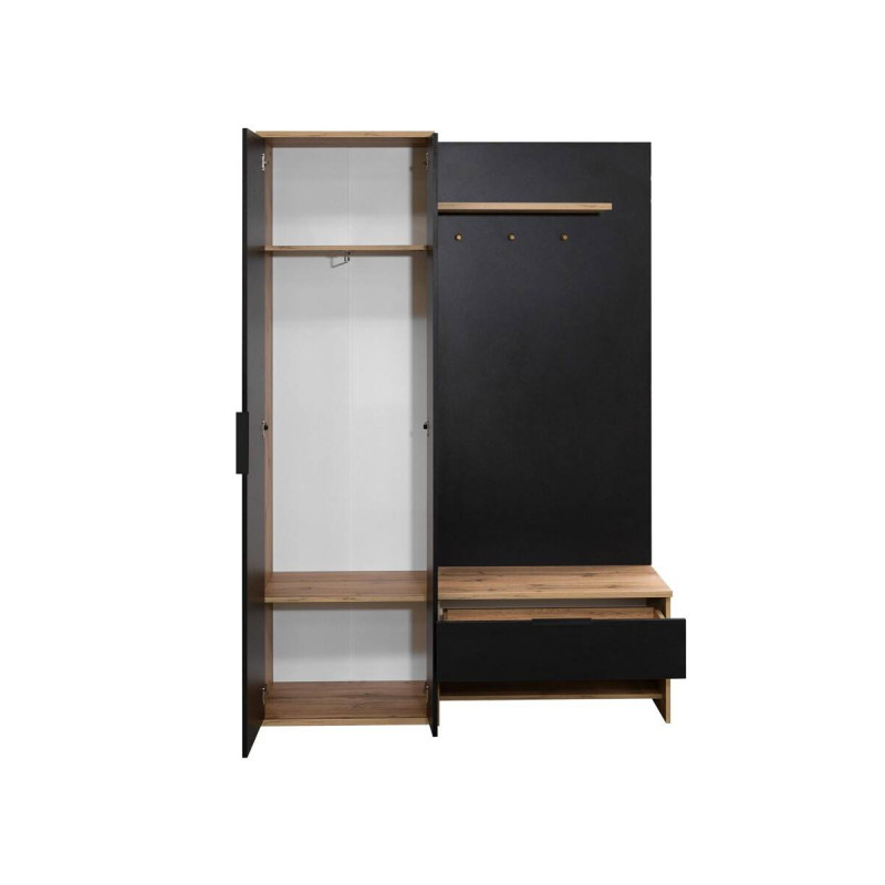 Garderoba Milo 140 w wersji z lustrem i połączeniem kolorów dąb wotan oraz czerni to eleganckie i praktyczne rozwiązanie do ciemniejszych, nowoczesnych wnętrz.
