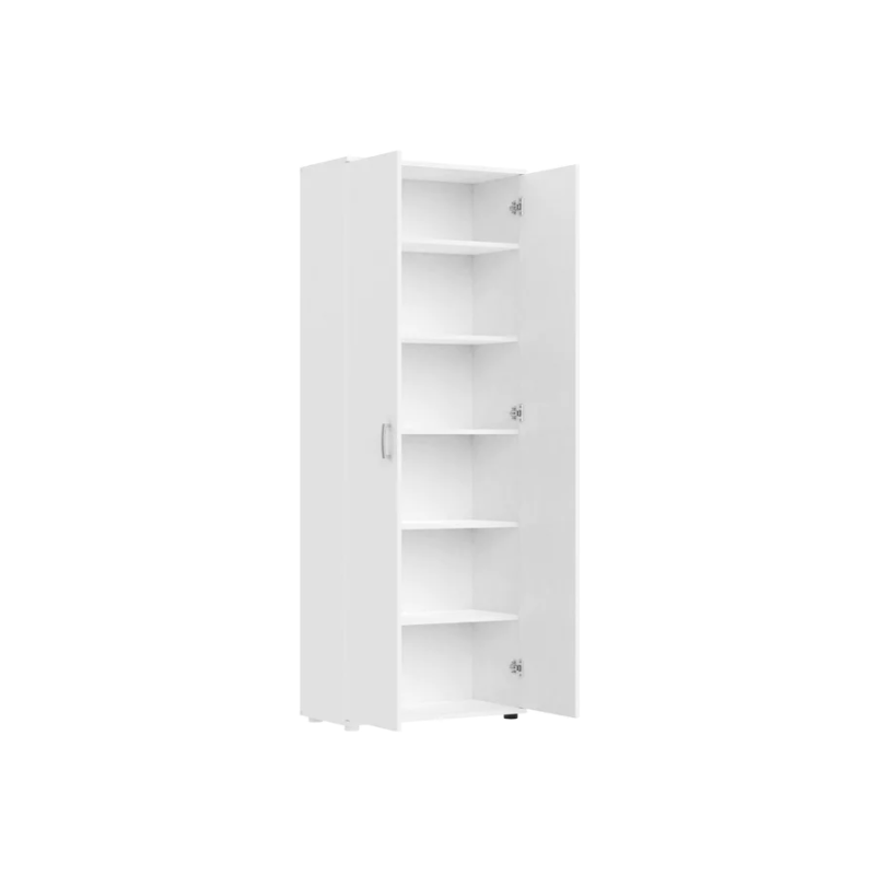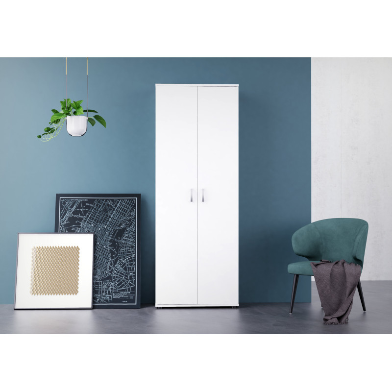Wykonana z mocnej płyty wiórowej ta szafka do przedpokoju jest wyjątkowo trwała i solidna. Mebel na buty ma sporo półek, co zapewnia wystarczająco dużo miejsca, by utrzymać porządek wśród obuwia. Dzięki 2 drzwiczkom organizer na buty ochroni je przed kurzem i skryje przed wzrokiem.