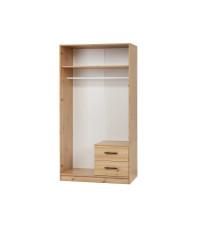 Szafa SMART SR3 to praktyczny wybór do garderoby, przedpokoju czy sypialni, który pozwoli Ci mieć wszystkie najpotrzebniejsze rzeczy zawsze w zasięgu ręki. Wewnątrz szafy, na samej górze, znajduje się przestronna półka idealna do przechowywania rzadziej używanych przedmiotów. Pod półką umieszczono drążek na wieszaki, dzięki któremu Twoje ubrania pozostaną schludne i gotowe do założenia w każdej chwili. To rozwiązanie zapewnia porządek i wygodę, jednocześnie dbając o elegancję przechowywanej odzieży. W dolnej części szafy znajdują się dwie kompaktowe szuflady, które świetnie sprawdzą się do przechowywania drobnych elementów garderoby, takich jak bielizna czy akcesoria. Szafa SMART SR3 łączy funkcjonalność z estetyką, oferując wygodne i wszechstronne miejsce na wszystkie Twoje ubrania.