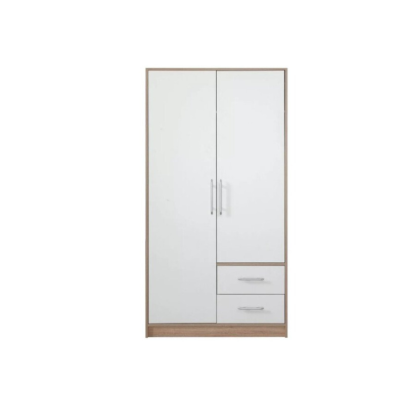 Szafa SMART SR3 to praktyczny wybór do garderoby, przedpokoju czy sypialni, który pozwoli Ci mieć wszystkie najpotrzebniejsze rzeczy zawsze w zasięgu ręki. Wewnątrz szafy, na samej górze, znajduje się przestronna półka idealna do przechowywania rzadziej używanych przedmiotów. Pod półką umieszczono drążek na wieszaki, dzięki któremu Twoje ubrania pozostaną schludne i gotowe do założenia w każdej chwili. To rozwiązanie zapewnia porządek i wygodę, jednocześnie dbając o elegancję przechowywanej odzieży. W dolnej części szafy znajdują się dwie kompaktowe szuflady, które świetnie sprawdzą się do przechowywania drobnych elementów garderoby, takich jak bielizna czy akcesoria. Szafa SMART SR3 łączy funkcjonalność z estetyką, oferując wygodne i wszechstronne miejsce na wszystkie Twoje ubrania.