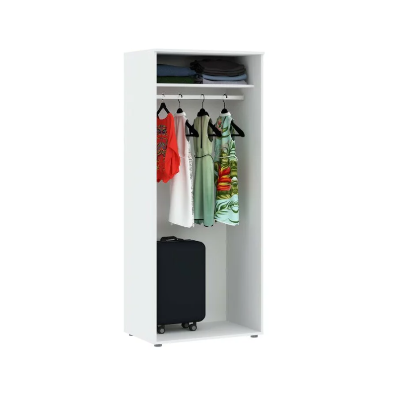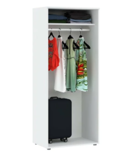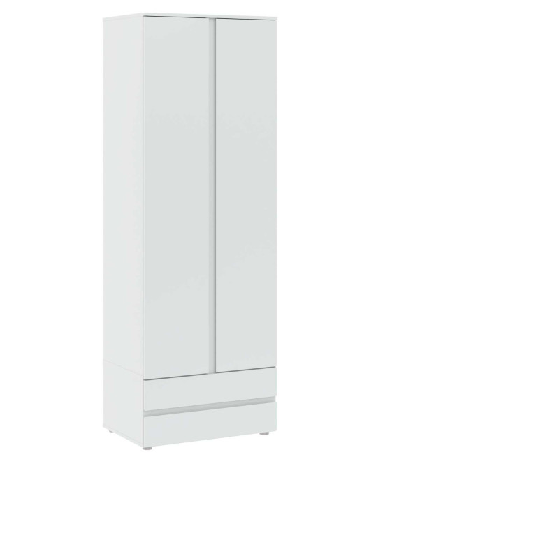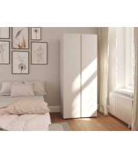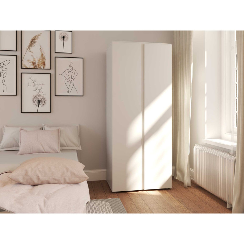Szafa Basic Plus 2D w kolorze białym to stylowy i funkcjonalny mebel do przechowywania ubrań. Wyposażona w drążek na wieszaki oraz górną półkę, zapewnia wygodną organizację garderoby. Minimalistyczny design doskonale pasuje do nowoczesnych wnętrz.