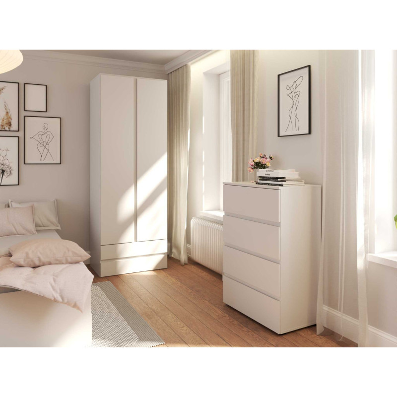 Szafa Basic Plus 2D to eleganckie i praktyczne rozwiązanie do sypialni, garderoby lub przedpokoju. Jej wnętrze zostało zaprojektowane z myślą o maksymalnym komforcie użytkowania – posiada solidny drążek na wieszaki, idealny do przechowywania odzieży, oraz pojemną górną półkę na dodatkowe akcesoria, jak pościel czy ubrania sezonowe. Dolna przestrzeń szafy doskonale sprawdzi się do przechowywania większych przedmiotów, np. walizki. Prosty, biały design sprawia, że mebel pasuje do nowoczesnych, minimalistycznych i skandynawskich aranżacji wnętrz. Solidne wykonanie gwarantuje trwałość i wygodę użytkowania. Szafa idealnie komponuje się z innymi meblami z kolekcji Basic Plus.