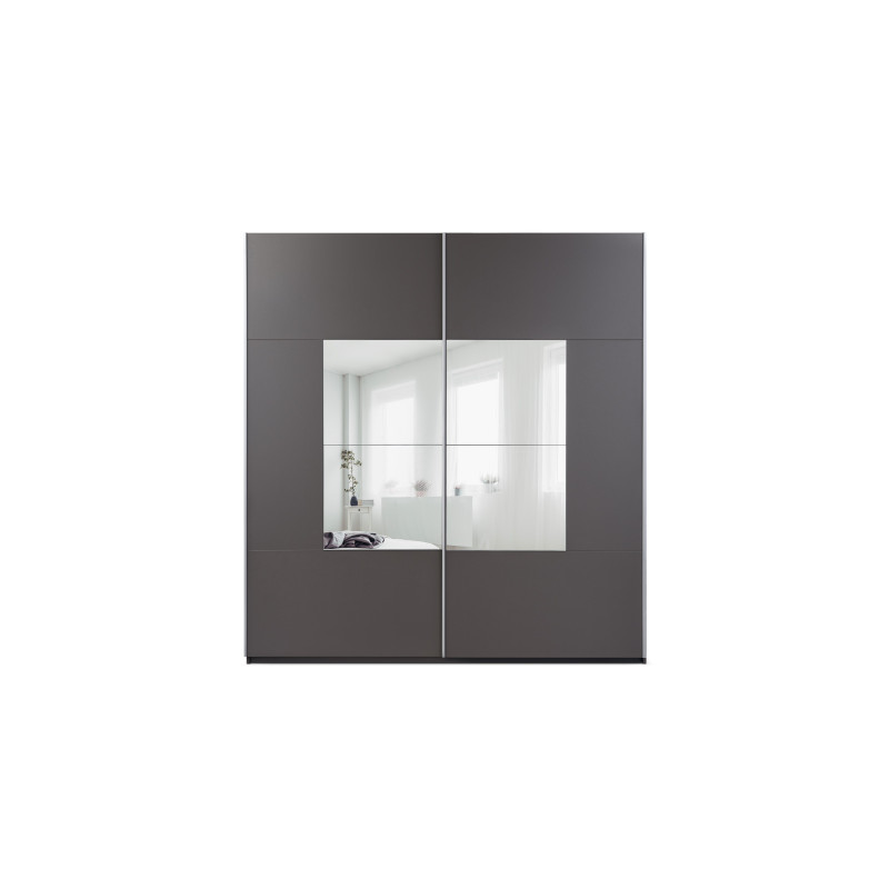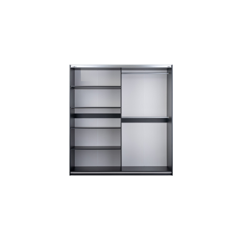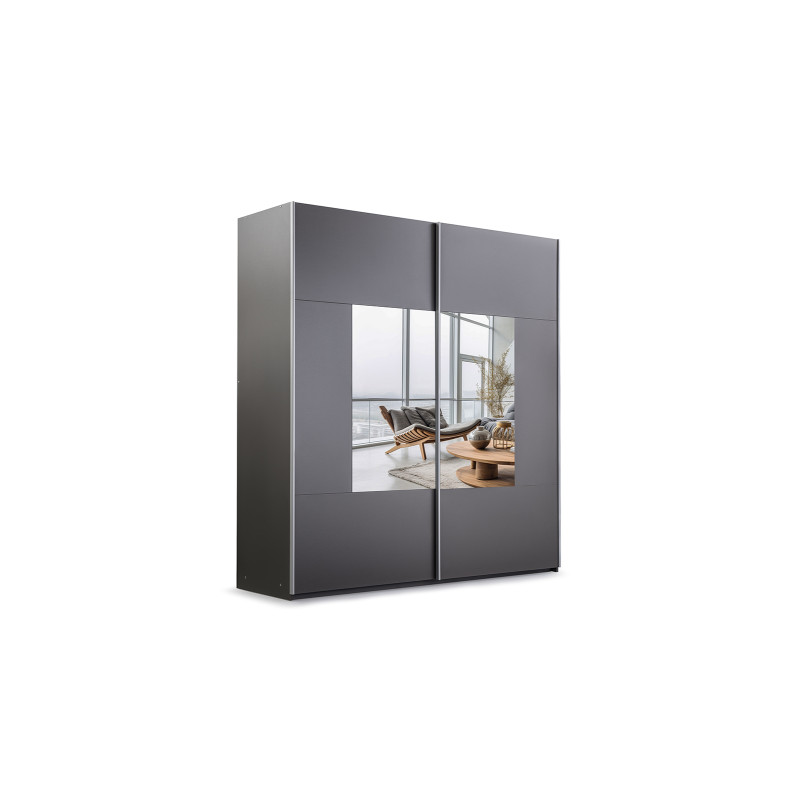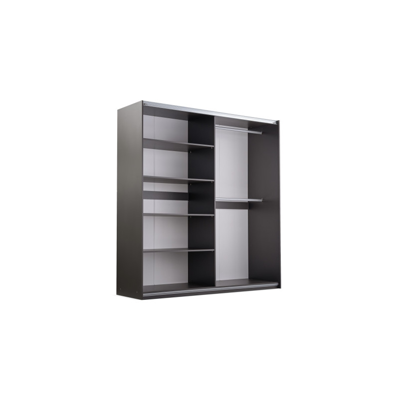 Szafa przesuwna Boston 203 w eleganckim grafitowym wykończeniu z wbudowanym lustrem to połączenie nowoczesnego designu i funkcjonalności. Doskonale wpisuje się w aranżacje loftowe, industrialne i nowoczesne, dodając wnętrzu stylu i porządku.