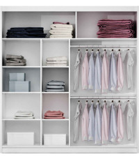 Szafy Paris zostały wykonane z trwałej płyty meblowej laminowanej, co gwarantuje jej wytrzymałość i długotrwałość. Podwójne przesuwne drzwi z lustrem osadzone na aluminiowych prowadnicach nadadzą wnętrzu subtelny blask i optycznie powiększą przestrzeń