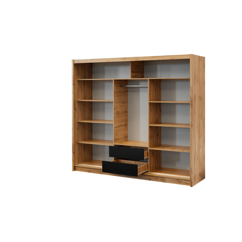 Szafa przesuwna London 250 bez lustra z lamelami to jeszcze pojemniejsza propozycja nowoczesnego i stylowego mebla do Twojego wnętrza. Lamele dodają jej charakteru i sprawiają, że wygląda lekko i elegancko. Szafa jest funkcjonalna i wygodna w użytkowaniu.