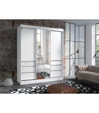 HAITI 180 nowoczesna szafa przesuwana. Lustro na środkowym froncie szafy, optycznie powiększy pomieszczenie i rozświetli je. Pojemna i funkcjonalna. Wyposażona w szuflady, półki i dwa drążki na wieszaki. Wykonana z wysokiej jakości płyty laminowanej. Obrzeża wykończone okleiną ABS. Taka szafa sprawdzi się w przedpokoju, sypialni jak i w pokoju dziennym.