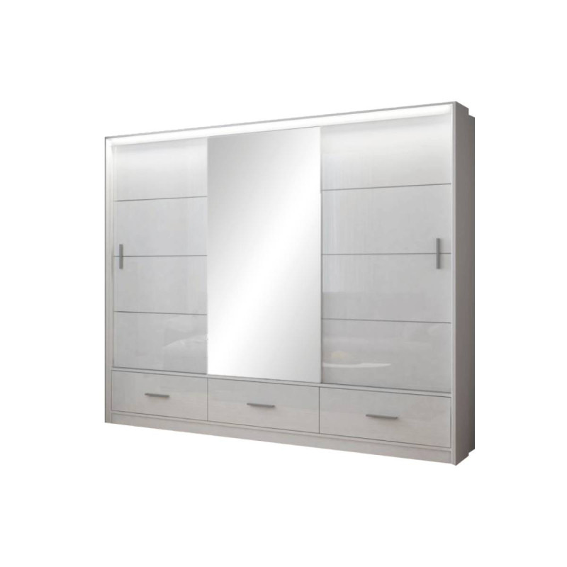 Szafa Marsylia 250 Biały/Biały Połysk/Lustro