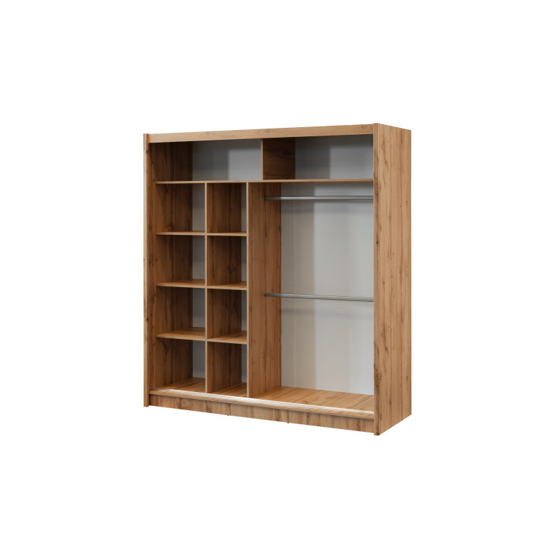 Kolorystyka korpusu dąb wotan i frontów z lustrem nadaje szafie London wyjątkowego charakteru. Matowe wykończenie zarówno frontów, jak i korpusu, nie tylko dodaje elegancji, ale również zabezpiecza przed śladami użytkowania, zachowując świeżość mebla na dłużej.