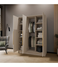 Wnętrze szafy zostało zaprojektowane z myślą o maksymalnej funkcjonalności. Połączenie półek i drążków gwarantuje dużą ilość miejsca do przechowywania oraz ułatwia utrzymanie porządku. Szafa idealnie nadaje się do przechowywania ubrań, pościeli i akcesoriów.