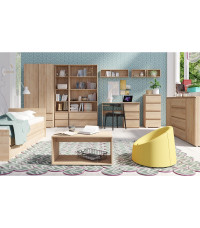 Dwudrzwiowa szafa z dziecięco-młodzieżowej kolekcji Cosmo łączy w sobie uniwersalność, funkcjonalność i atrakcyjny wygląd. Łagodne dekory nadają jej ponadczasowy styl, który z pewnością zadowoli zarówno dzieci, jak i rodziców. Bezuchwytowy system otwierania drzwi i szuflad ułatwia utrzymanie mebla w czystości, oferując jednocześnie maksymalną wygodę użytkowania. Wnętrze szafy podzielone jest na dwie strefy: prawą, przeznaczoną na bieliznę, oraz lewą, wyposażoną w drążek na wieszaki. Na dole znajdują się dwie szuflady, które zapewniają odpowiednią ilość miejsca na przechowywanie drobnych elementów garderoby. To połączenie praktyczności i prostego designu sprawia, że szafa Cosmo jest doskonałym wyborem do uniwersalnej dziecięco-młodzieżowej aranżacji. Dzięki kolekcji Cosmo w pokoju Twojego dziecka zapanuje naturalność i rozluźnienie, które sprzyjają zarówno nauce, jak i odpoczynkowi.