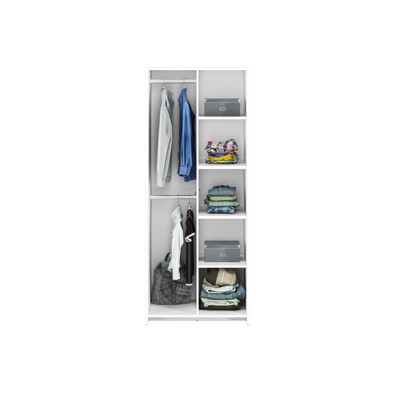 KENDO to zestaw siedmiu praktycznych i uniwersalnych mebli do pokoju dziennego, pokoju nastolatka, sypialni czy domowego biura.Dwa optymalne biurka, gwarantujące komfort pracy i nauki, dwie nowoczesne i pojemne komody, dwie szafy – duża z przesuwnymi drzwiami oraz mniejsza z systemem otwierania drzwi push to open – oraz praktyczna półka wisząca to elementy uniwersalnej i minimalistycznej kolekcji białych mebli pasujących do każdego współczesnego wnętrza. Białe meble rozjaśnią i powiększają optycznie przestrzeń, a geometria i bezuchwytowość brył podkreśli nowoczesny charakter pomieszczenia.
