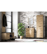 NEVIO to nowoczesna i elegancka kolekcja mebli do przedpokoju.Dekor Dąb Artisan wraz z czarnymi uchwytami oraz nóżkami jest idealnym rozwiązaniem do współczesnego wnętrza. Przemyślana konstrukcja brył zapewni miejsce do przechowywania butów oraz ubrań. Miękkie, tapicerowane siedziska oraz wieszak gwarantują komfort użytkowania. Dzięki różnorodności mebli NEVIO z łatwością zaaranżujesz zarówno małe, jak i duże wnętrze.