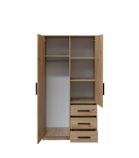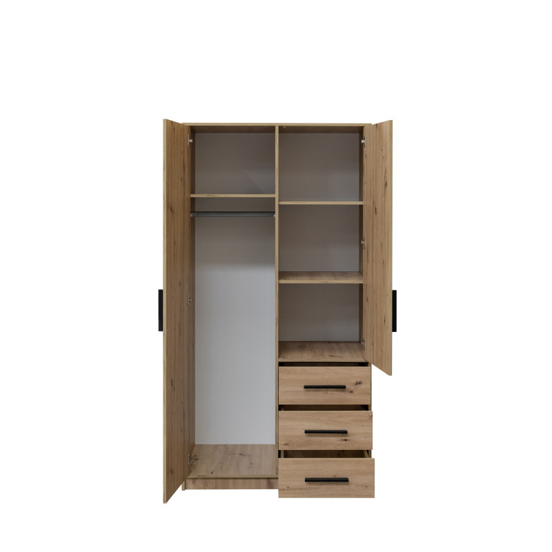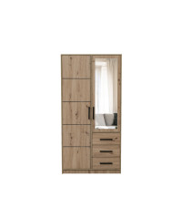 Szafa Kos D2 dąb artisan/lustro o wymiarach 200 cm wysokości, 100 cm szerokości i 57,5 cm głębokości. Efektowny i praktyczny model z ciekawym wybarwieniem i mnóstwem miejsca do przechowywania. Wytrzymały materiał konstrukcyjny szafy zapewnia trwałość, a ciekawy design doskonale sprawdzi się w wielu różnorodnych aranżacjach.