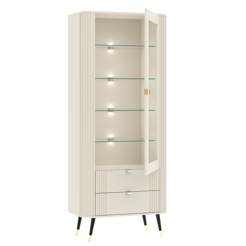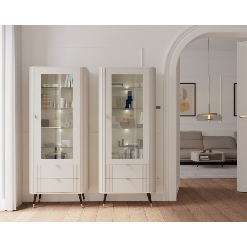 Witryna Onyx 1D2S w kolorze kaszmir to elegancki i funkcjonalny mebel, który doskonale wkomponuje się w każdą aranżację wnętrza. Wykonana z wysokiej jakości płyty MDF, gwarantuje solidność i trwałość przez wiele lat. Dzięki przemyślanej konstrukcji, witryna oferuje wystarczająco dużo miejsca do przechowywania zarówno książek, jak i dekoracji, co pozwoli Ci na idealne zorganizowanie przestrzeni.Jej wymiary – wysokość 192,4 cm, szerokość 78,4 cm i głębokość 40 cm – sprawiają, że jest to mebel idealny do mniejszych oraz większych pomieszczeń. Witryna została zaprojektowana w sposób umożliwiający samodzielny montaż, co czyni ją łatwą w użytkowaniu. Produkt jest nowy, dostarczany w trzech paczkach i objęty dwuletnią gwarancją, co zapewnia spokój umysłu przy jego użytkowaniu.Kolor kaszmir dodaje lekkości i elegancji, a minimalistyczny design sprawia, że witryna doskonale wpasuje się w różnorodne style aranżacyjne. Witryna Onyx 1D2S to doskonały wybór dla osób ceniących estetykę oraz funkcjonalność w wystroju wnętrz.